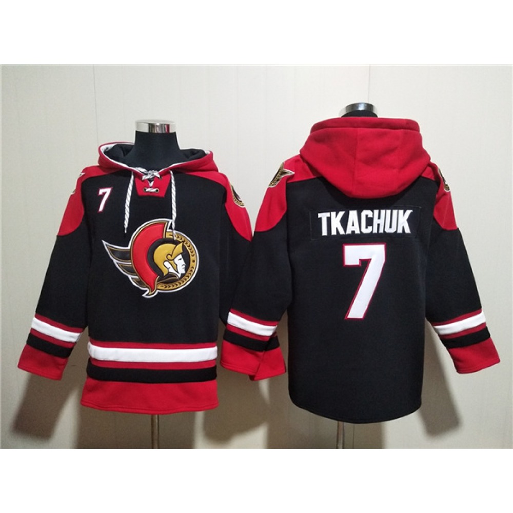 Men's Ottawa Senators #7 Brady Tkachuk Black Ageless Must-Have Lace-Up Pullover Hoodie