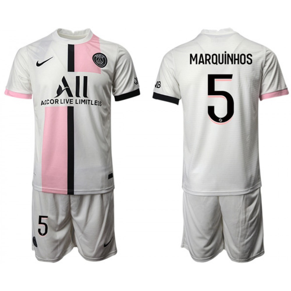 Men's Paris Saint-Germain #5 Marquinhos 2021/22 White Soccer Jersey Suit