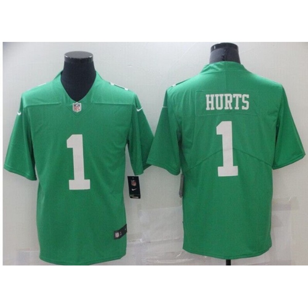 Men's Philadelphia Eagles #1 Jalen Hurts Green Color Rush Stitched Football Jersey