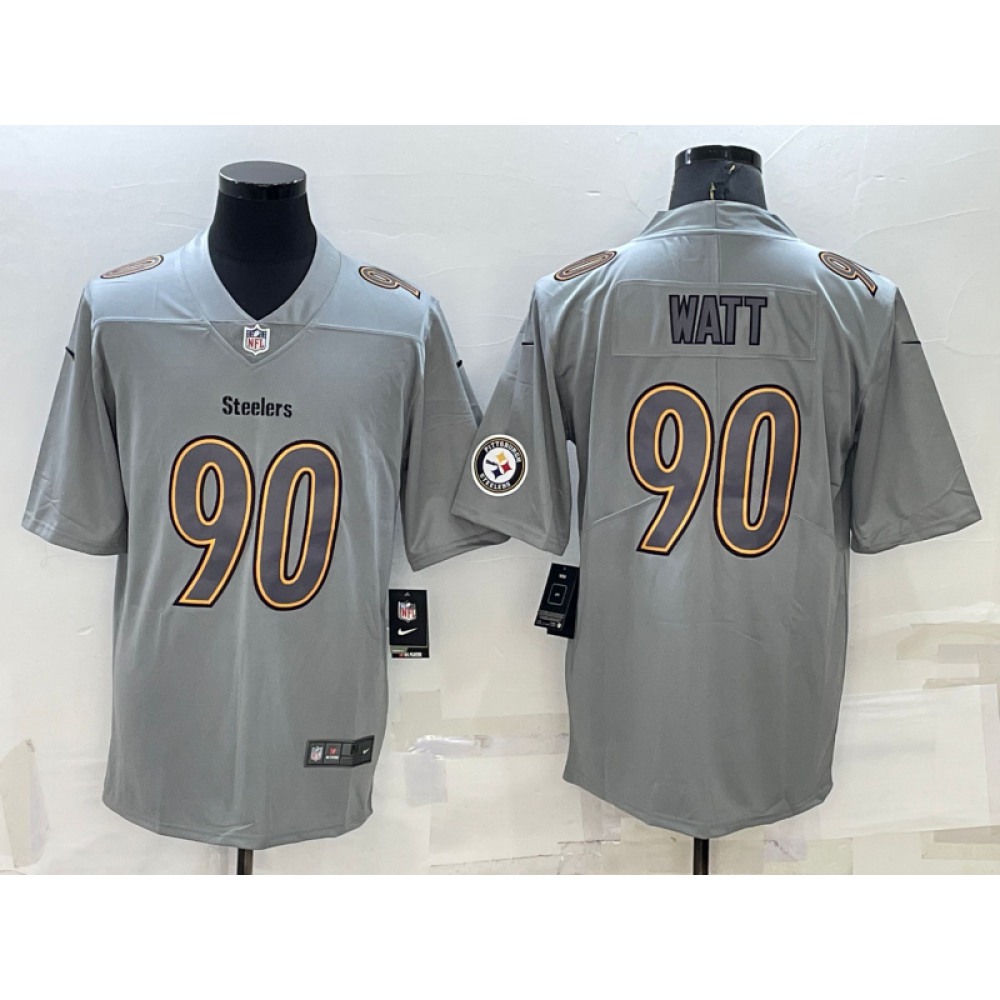 Men's Pittsburgh Steelers #90 T.J. Watt Grey With Patch Atmosphere Fashion Stitched Jersey