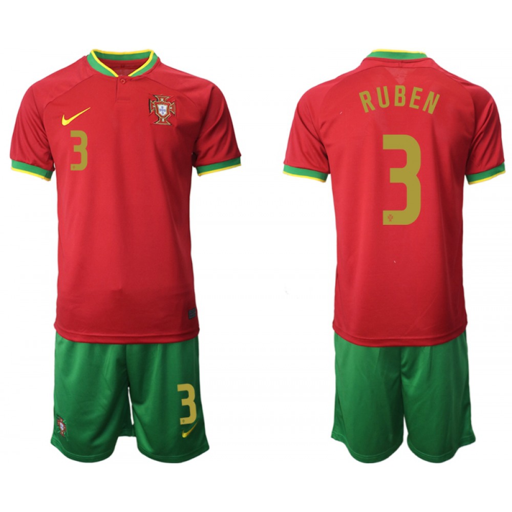 Men's Portugal #3 Ruben Red Home Soccer Jersey Suit