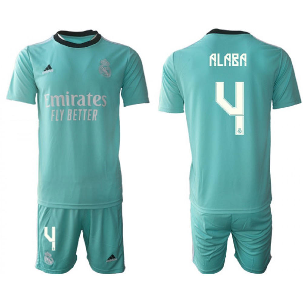 Men's Real Madrid #4 David Alaba 2021/22 Teal Away Soccer Jersey Suit