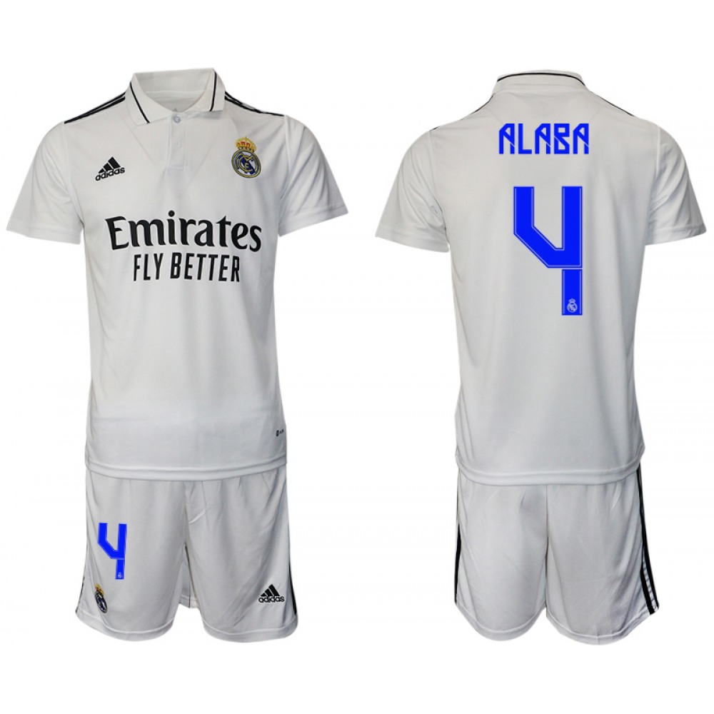 Men's Real Madrid #4 David Alaba 22/23 White Home Soccer Jersey Suit