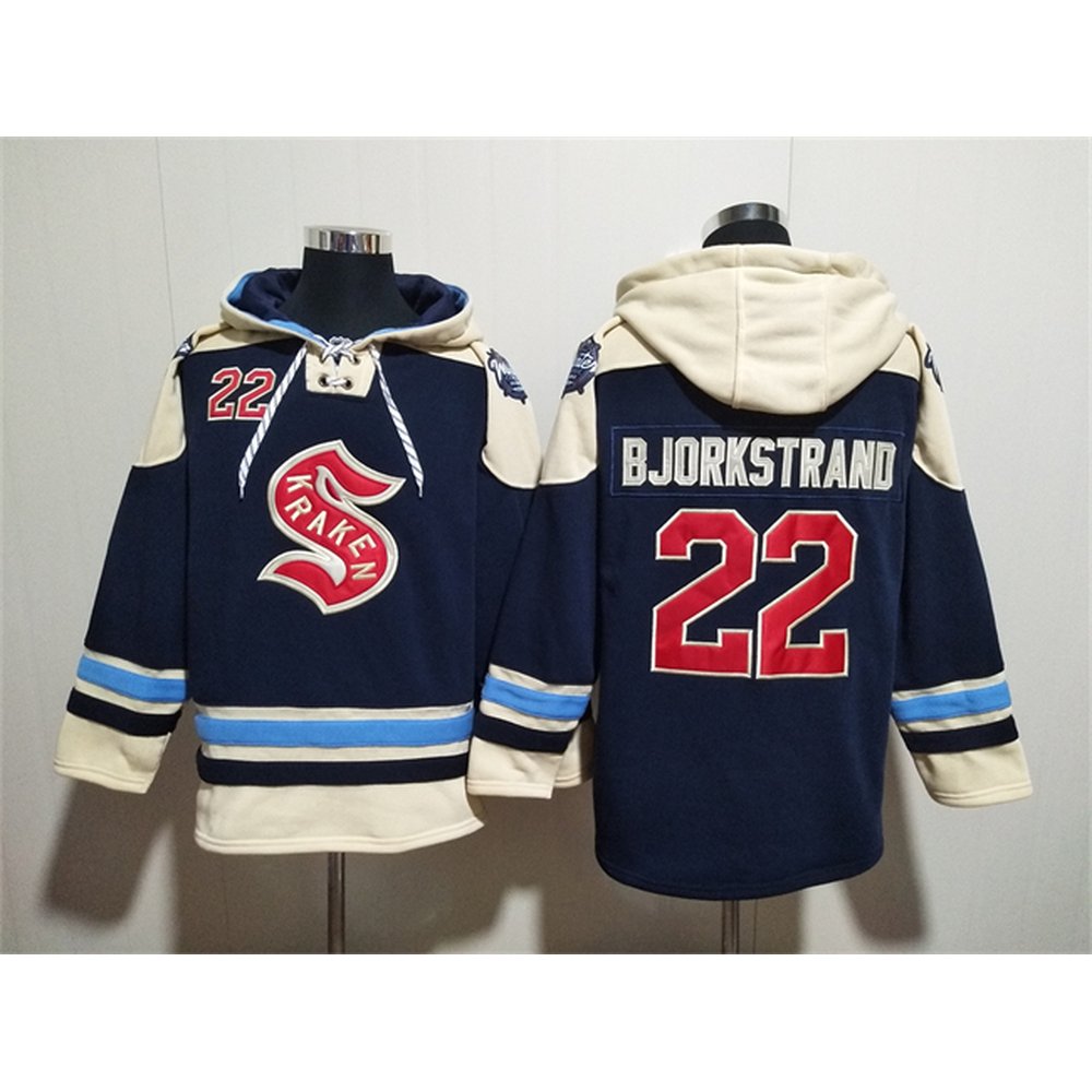 Men's Seattle Kraken #22 Oliver Bjorkstrand Deep Sea Blue Lace-Up Pullover Hoodie
