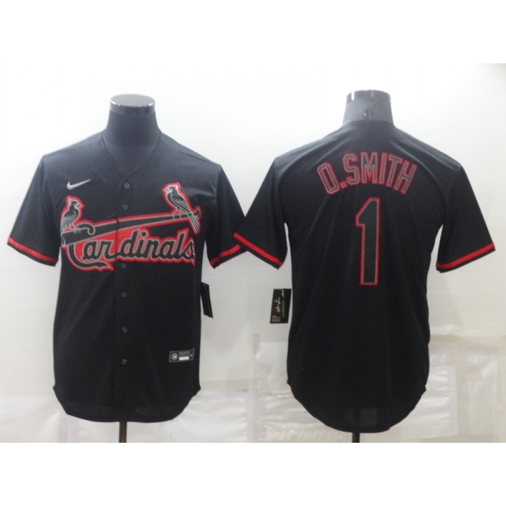 Men's St. Louis Cardinals #1 Ozzie Smith Black shadow Cool Base Stitched Jersey