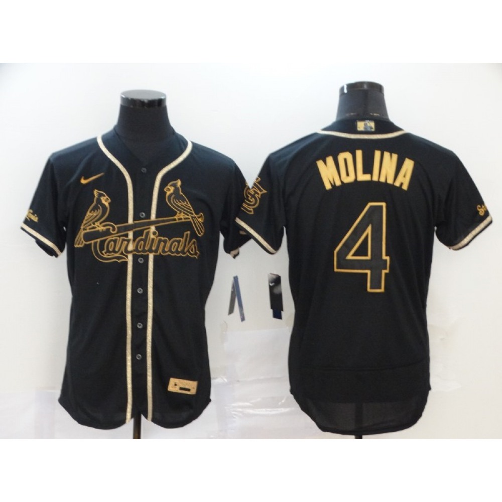 Men's St. Louis Cardinals #4 Yadier Molina Black Golden Flex Base Stitched MLB Jersey