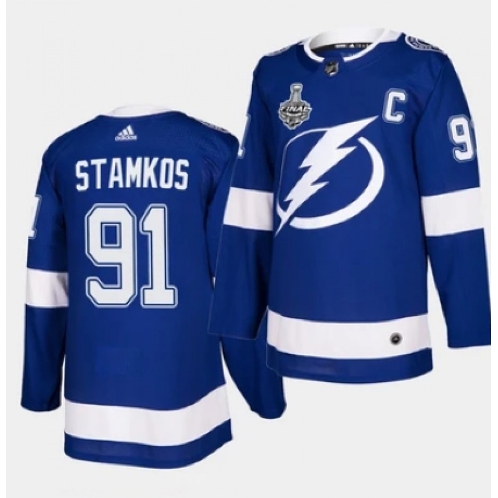 Men's Tampa Bay Lightning #91 Steven Stamkos Blue Stanley Cup Finals Blue Stitched Jersey