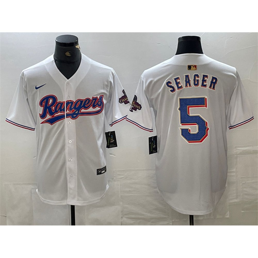 Men's Texas Rangers #5 Corey Seager White Gold Cool Base Stitched Baseball Jersey