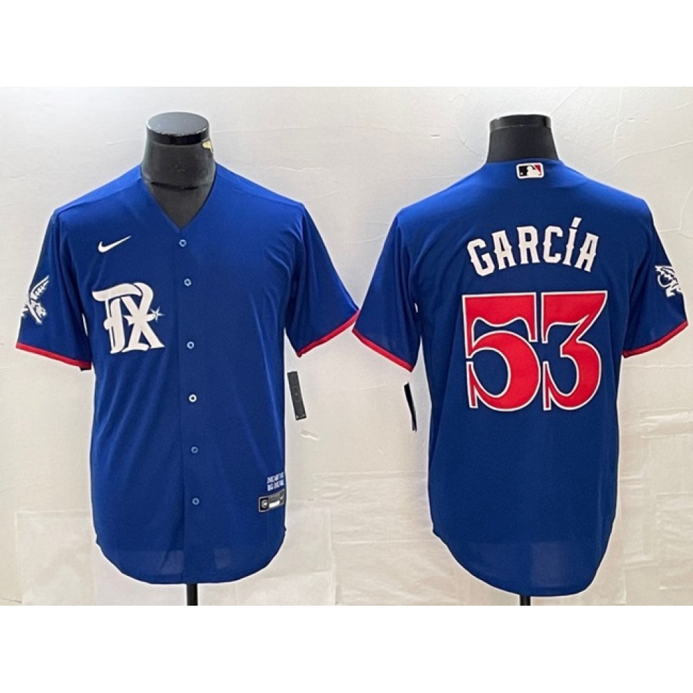 Men's Texas Rangers #53 Adolis Garcia Royal City Connect Stitched Baseball Jersey