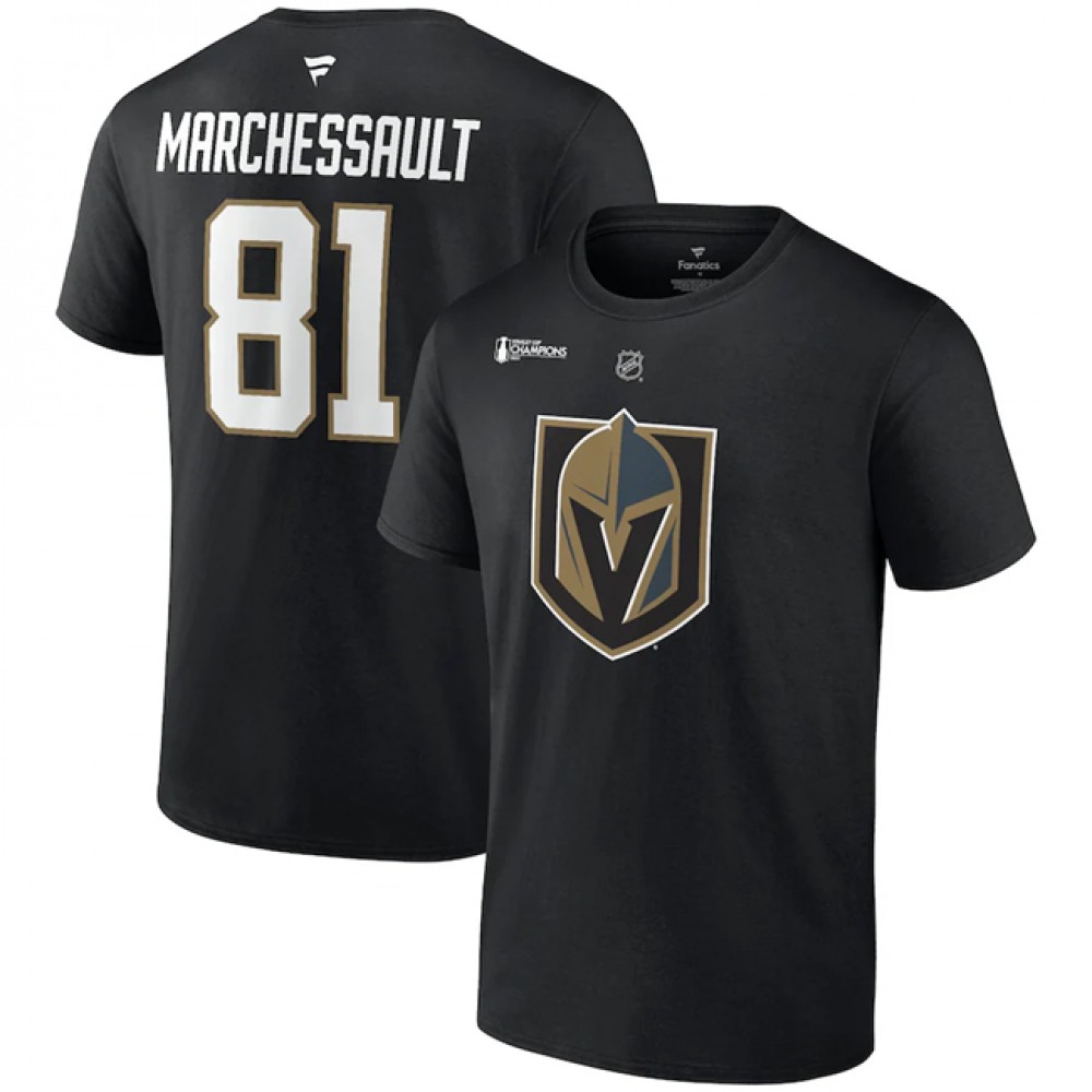 Men's Vegas Golden Knights #81 Jonathan Marchessault Black 2023 Stanley Cup Champions Name & Number T-Shirt