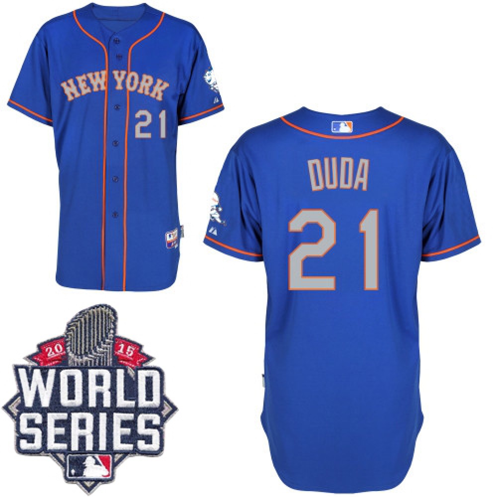Mets #21 Lucas Duda Blue(Grey NO.) Alternate Road Cool Base W/2015 World Series Patch Stitched MLB Jersey