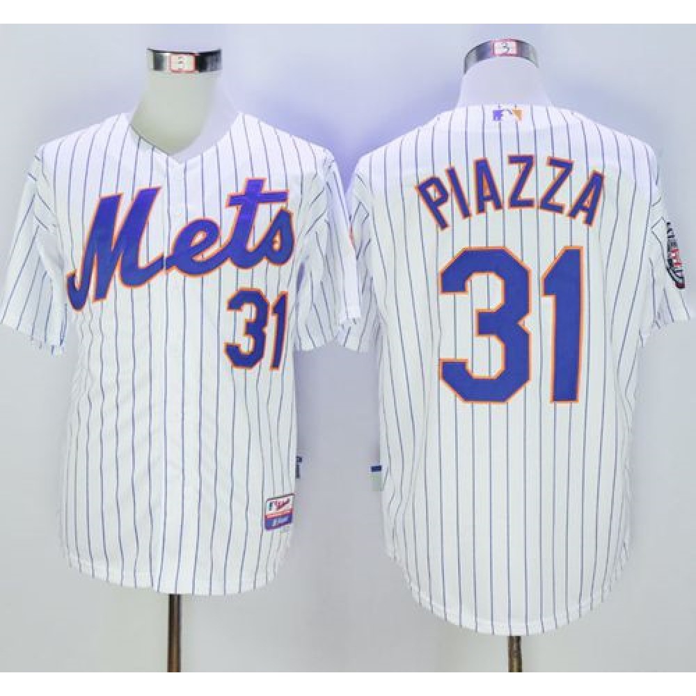 Mets #31 Mike Piazza White(Blue Strip) 2016 Hall Of Fame Patch Stitched MLB Jersey