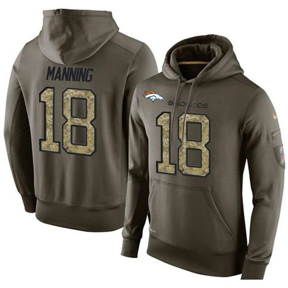 NFL Men's Denver Broncos #18 Peyton Manning Stitched Green Olive Salute To Service KO Performance Hoodie