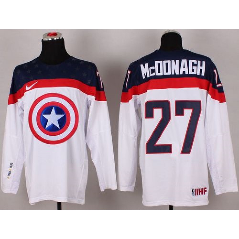 Olympic Team USA #27 Ryan McDonagh White Captain America Fashion Stitched NHL Jersey