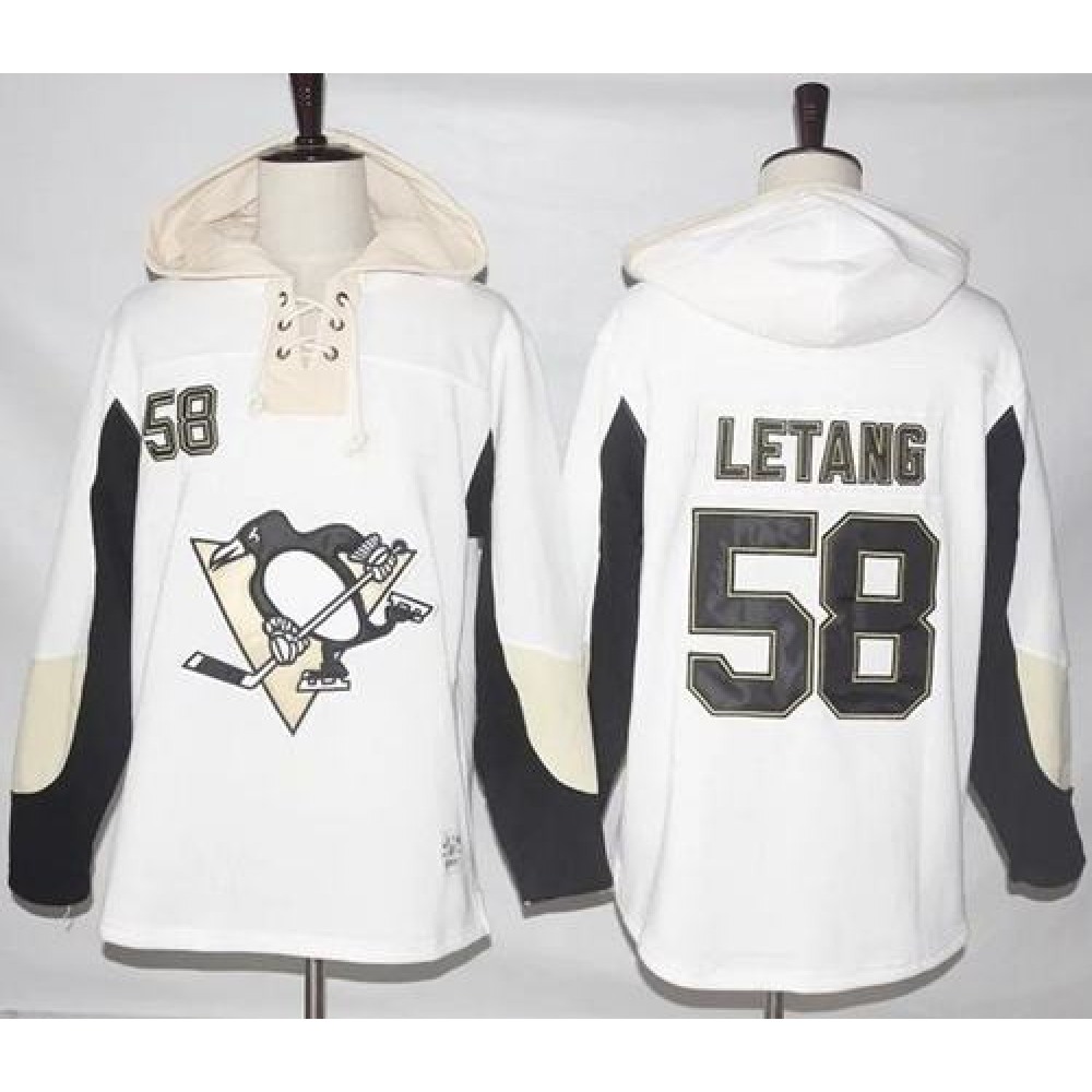 Penguins #58 Kris Letang White Pullover Hoodie Stitched NHL Jersey