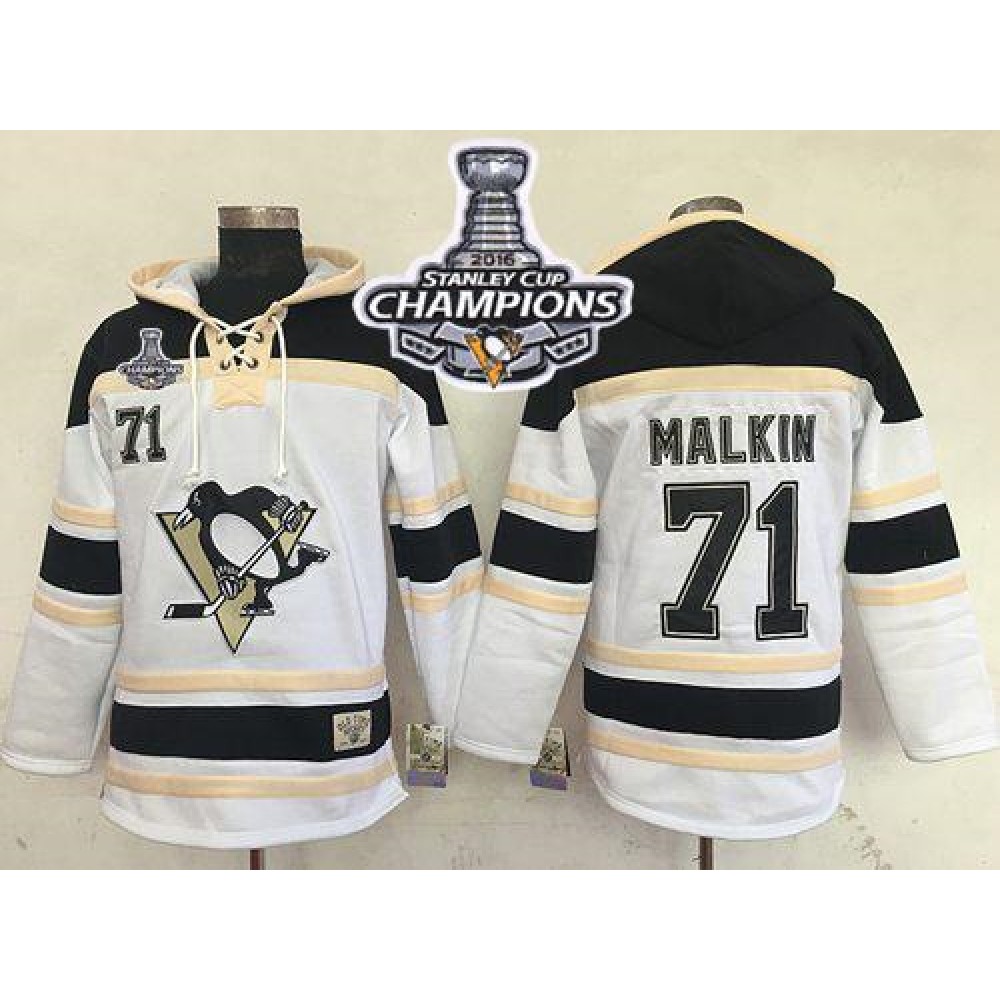 Penguins #71 Evgeni Malkin White Sawyer Hooded Sweatshirt 2016 Stanley Cup Champions Stitched NHL Jersey