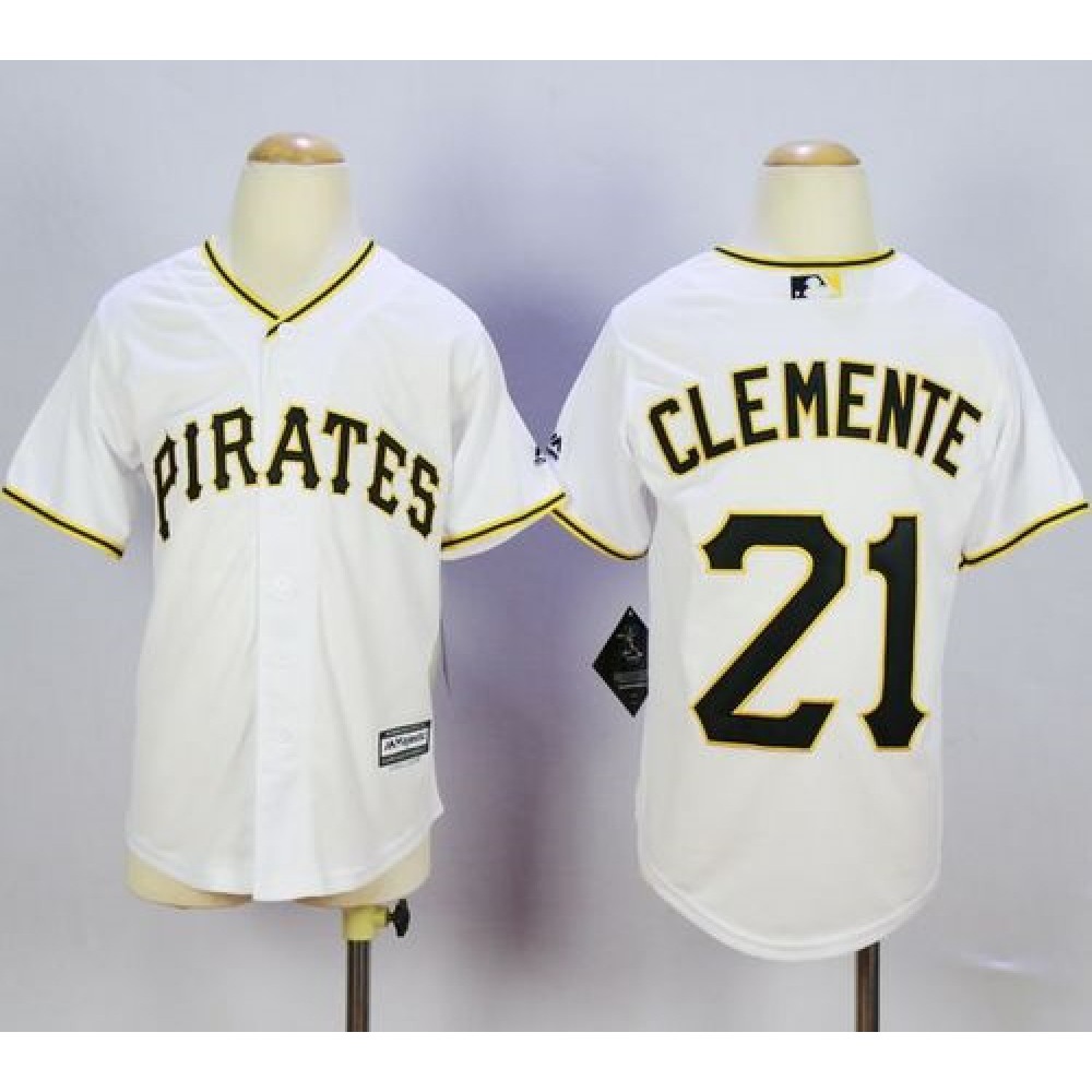 Pirates #21 Roberto Clemente White Cool Base Stitched Youth MLB Jersey