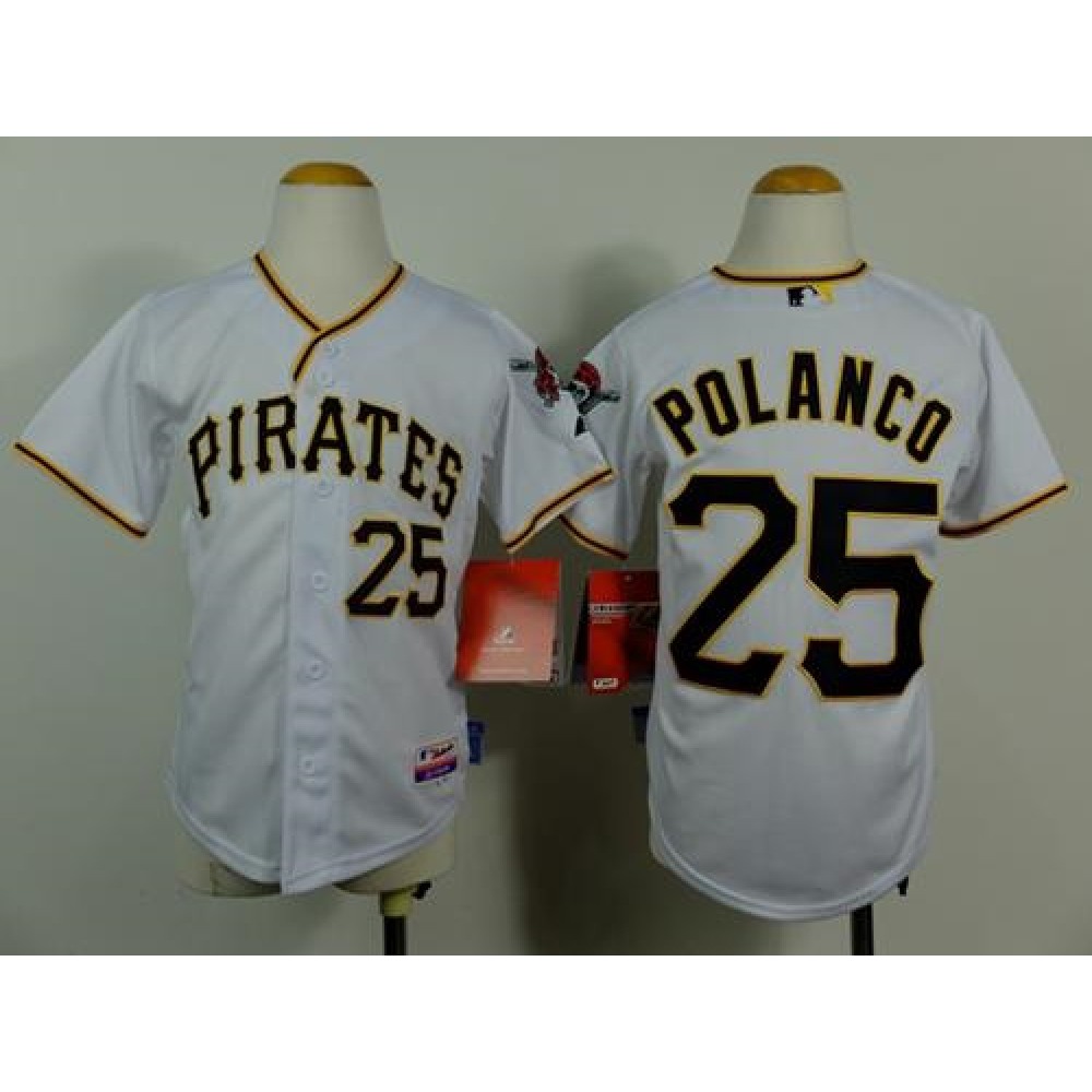Pirates #25 Gregory Polanco White Cool Base Stitched Youth MLB Jersey