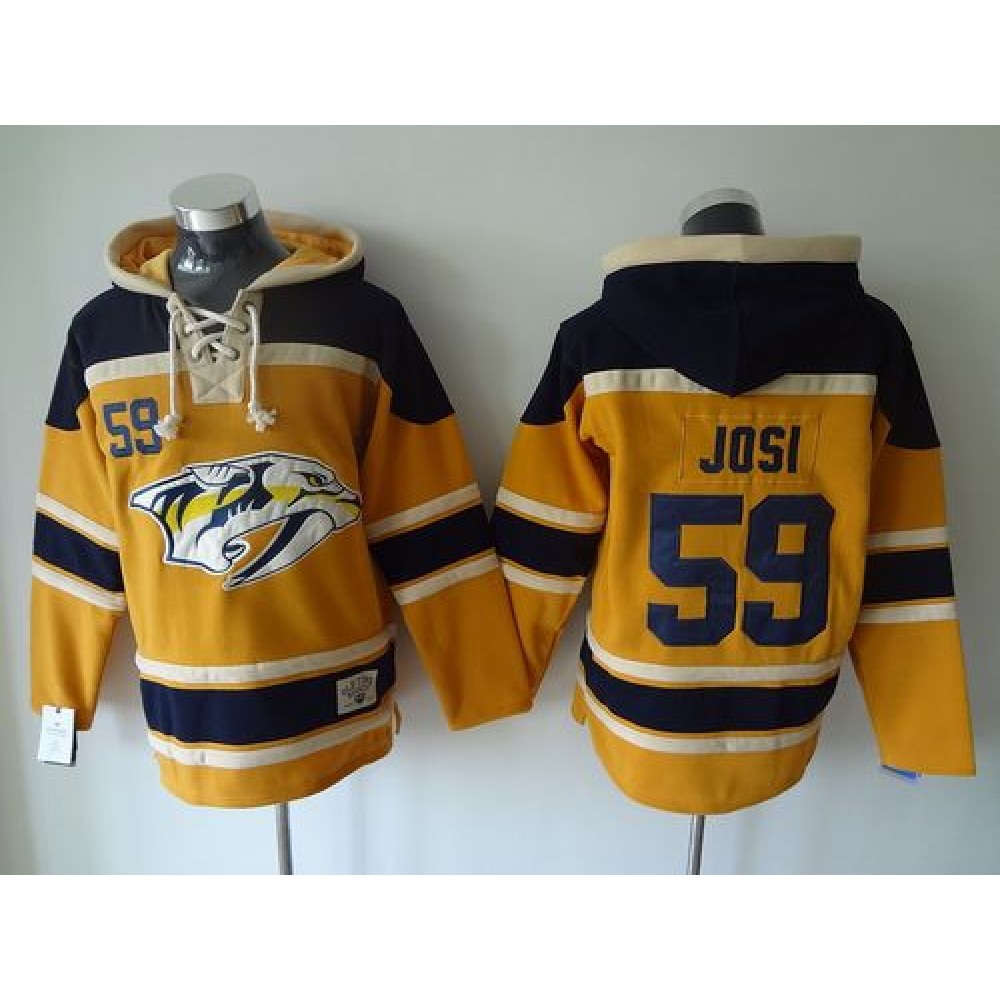 Predators #59 Roman Josi Yellow Sawyer Hooded Sweatshirt Stitched NHL Jersey