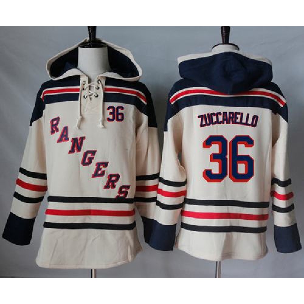 Rangers #36 Mats Zuccarello Cream Sawyer Hooded Sweatshirt Stitched NHL Jersey