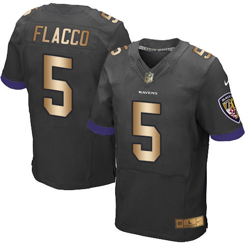 Ravens #5 Joe Flacco Black Alternate Men's Stitched NFL New Elite Gold Jersey