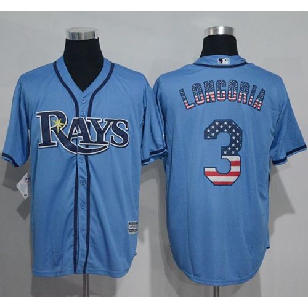 Rays #3 Evan Longoria Light Blue USA Flag Fashion Stitched MLB Jersey