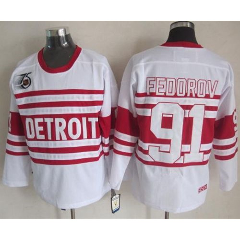 Red Wings #91 Sergei Fedorov White 75TH CCM Stitched NHL Jersey