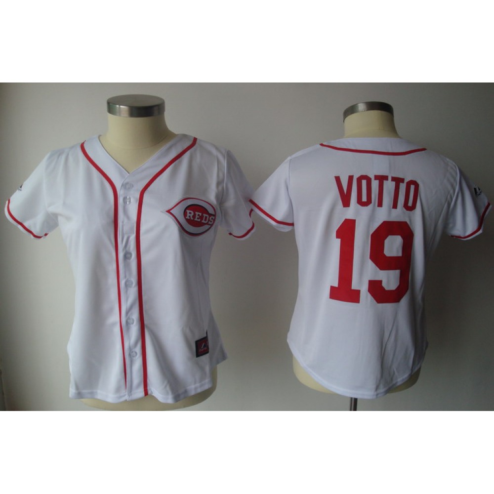 Reds #19 Joey Votto White Women's Fashion Stitched MLB Jersey