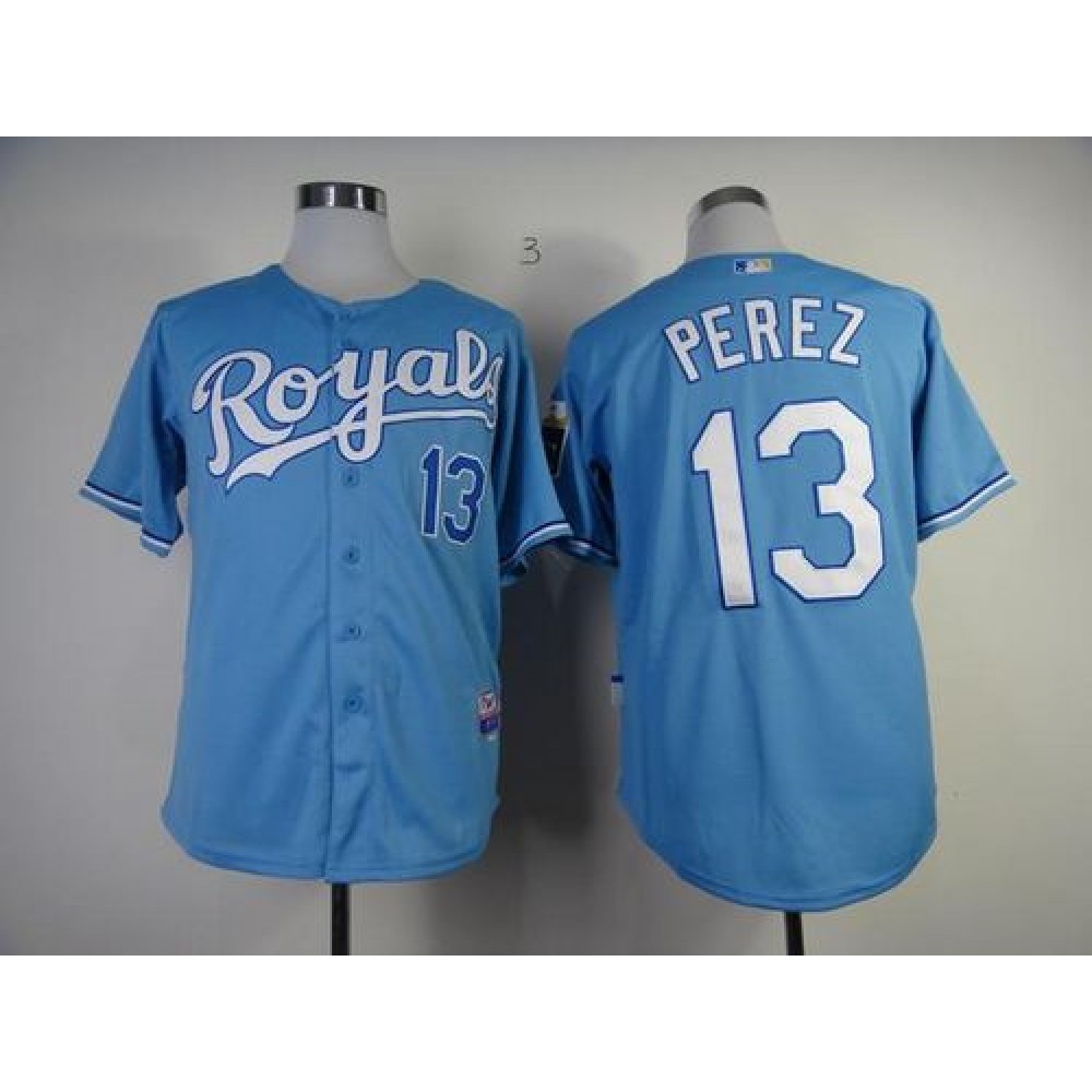 Royals #13 Salvador Perez Light Blue Cool Base Stitched MLB Jersey