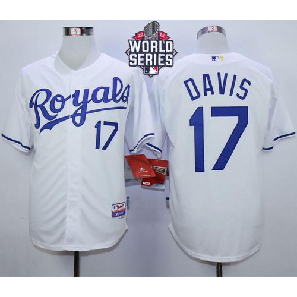 Royals #17 Wade Davis White Cool Base W/2015 World Series Patch Stitched MLB Jersey