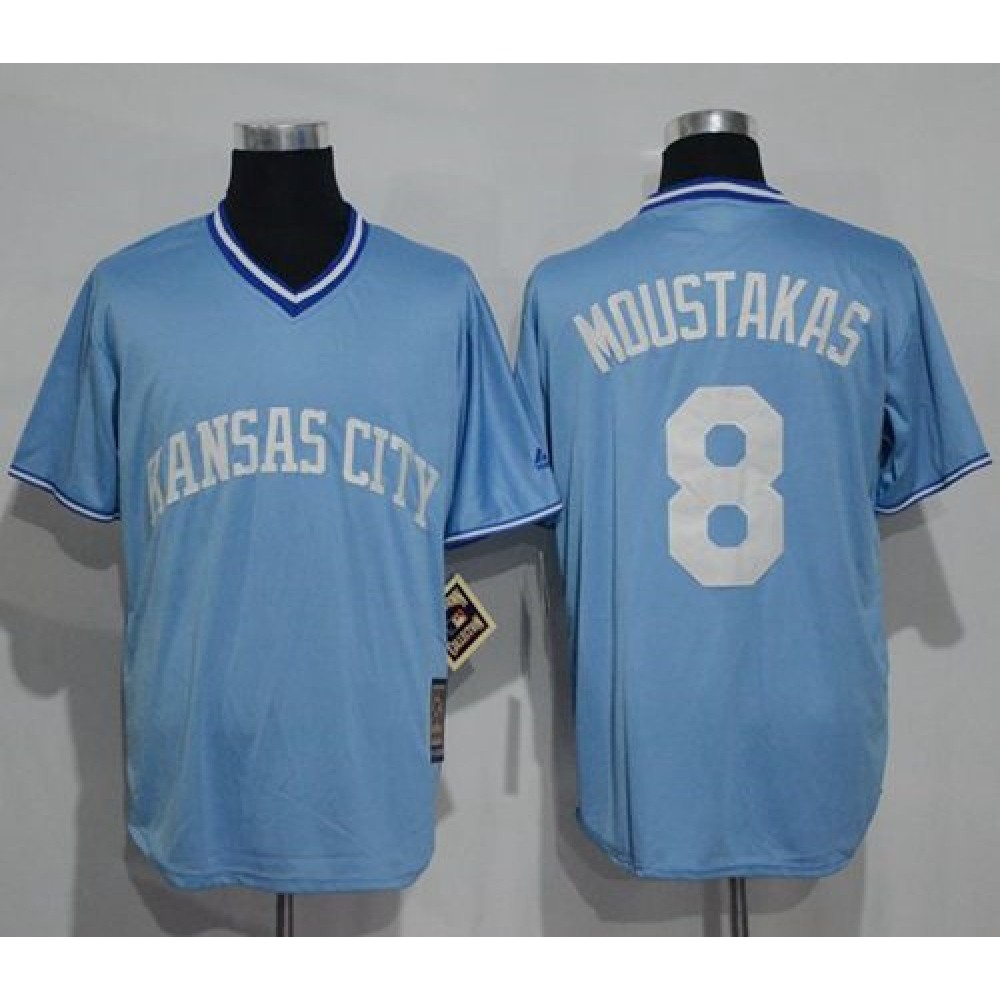 Royals #8 Mike Moustakas Light Blue Cooperstown Stitched MLB Jersey
