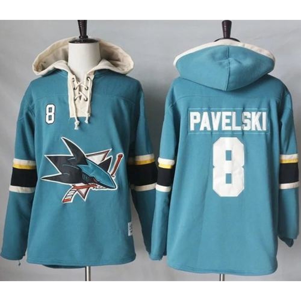 Sharks #8 Joe Pavelski Teal Pullover Hoodie Stitched NHL Jersey