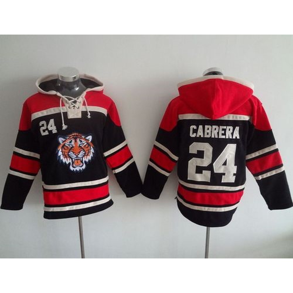 Tigers #24 Miguel Cabrera Black Sawyer Hooded Sweatshirt MLB Hoodie