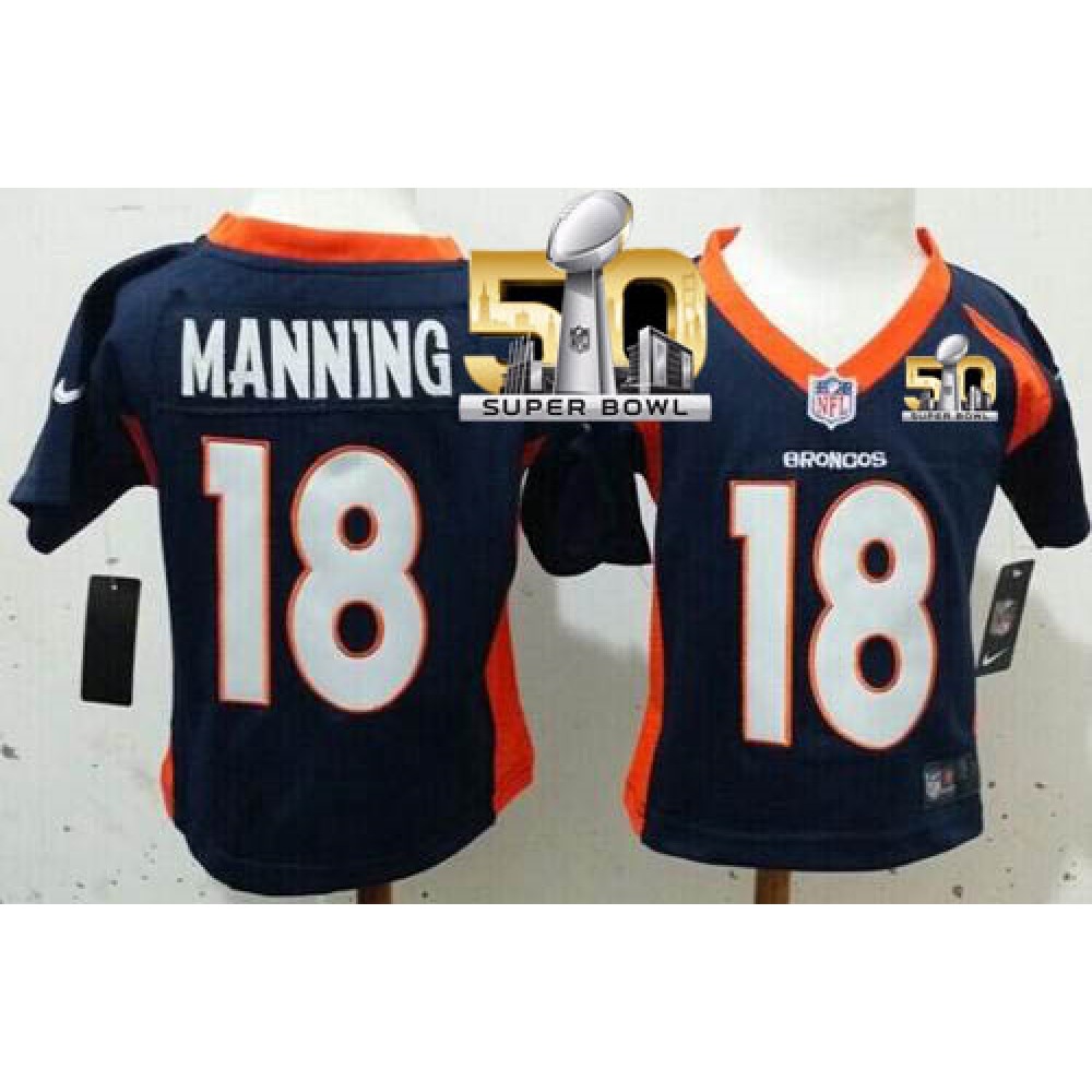 Toddler Broncos #18 Peyton Manning Navy Blue Alternate Super Bowl 50 Stitched NFL Elite Jersey