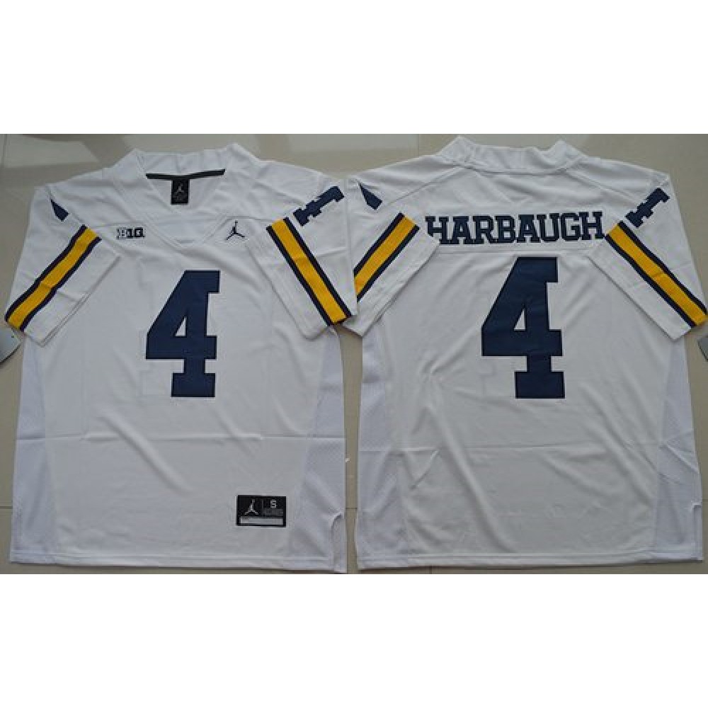 Wolverines #4 Jim Harbaugh White Stitched NCAA Jersey