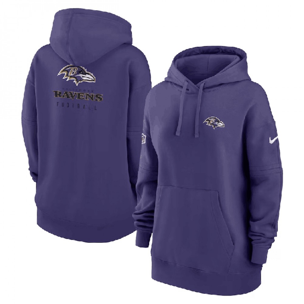 Women's Baltimore Ravens Purple Sideline Club Fleece Pullover Hoodie(Run Small)