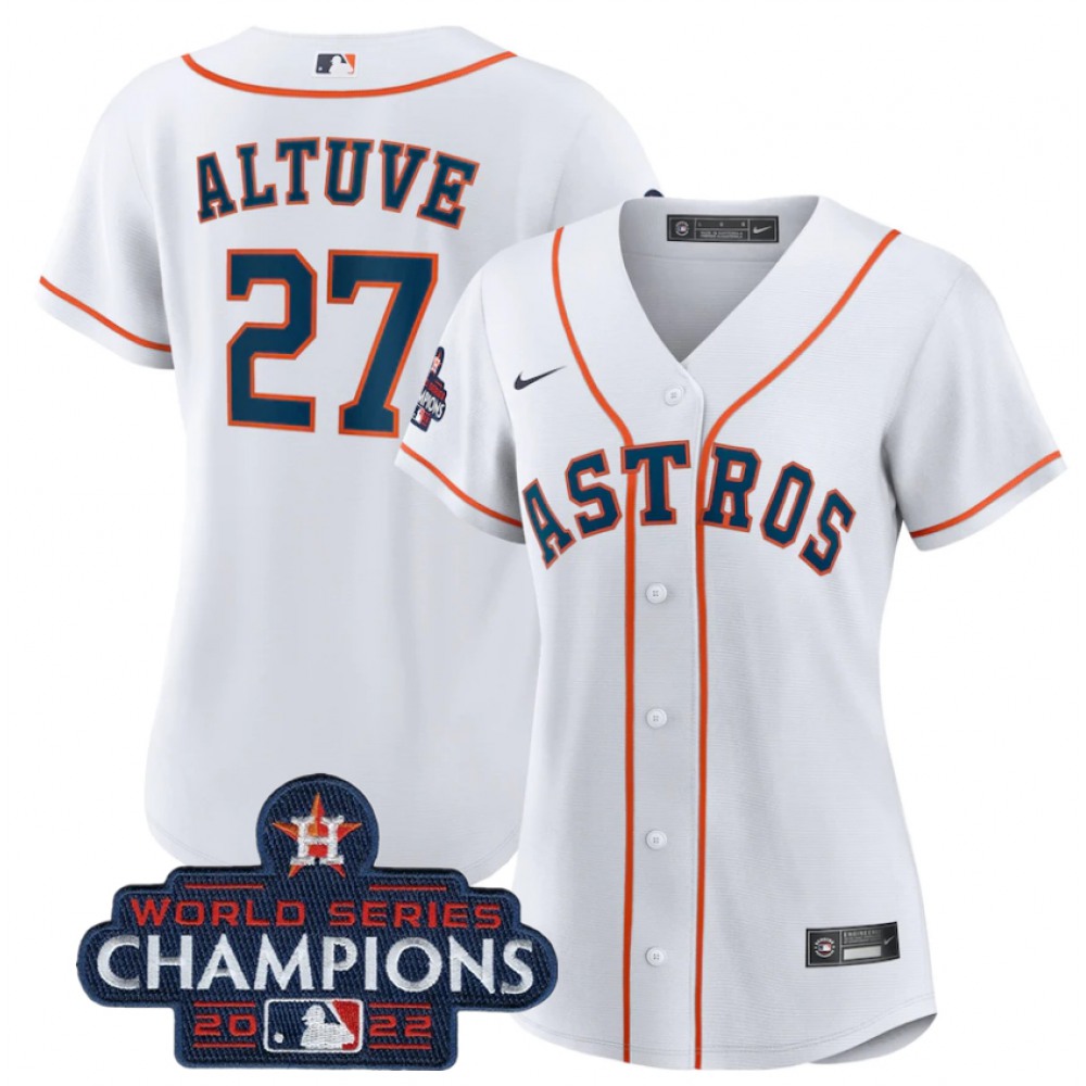 Women's Houston Astros #27 Jose Altuve White 2022 World Series Champions Cool Base Stitched Baseball Jersey(Run Small)