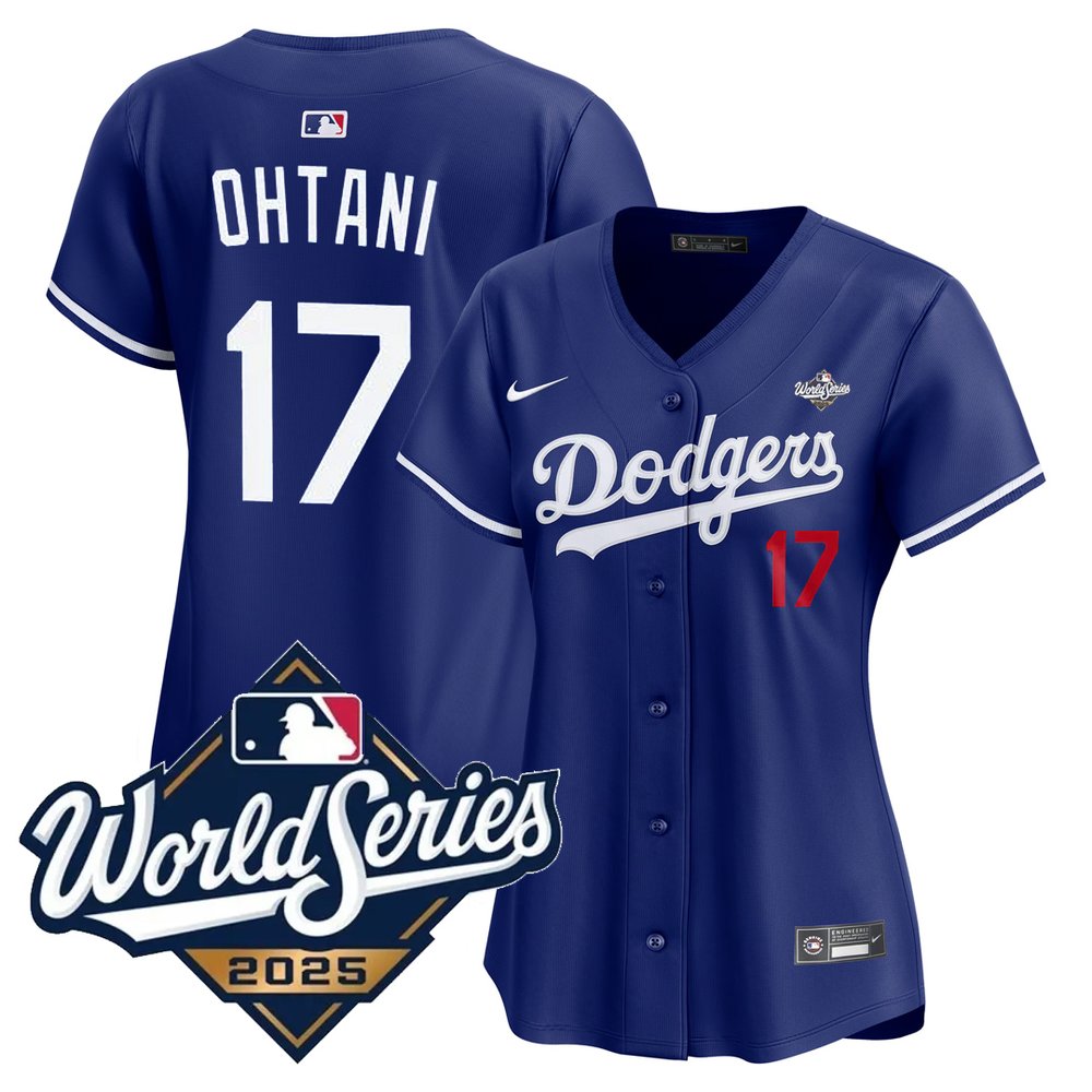 Women's Los Angeles Dodgers #17 Shohei Ohtani Nike Royal 2025 World Series Home Limited Jersey