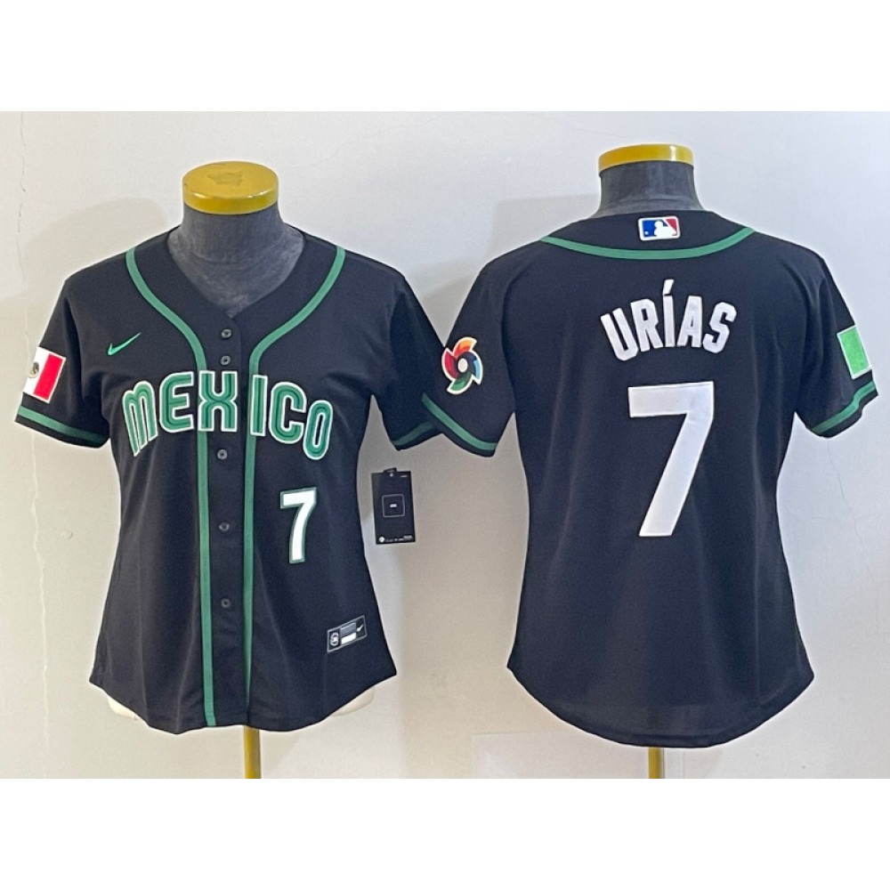 Women's Mexico Baseball #7 Julio Urias 2023 Black World Baseball Classic With Patch Stitched Jersey(Run Small)