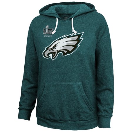 Women's Philadelphia Eagles #26 Saquon Barkley Threads Midnight Green Super Bowl LIX Champions Name & Number Tri-Blend Pullover Hoodie