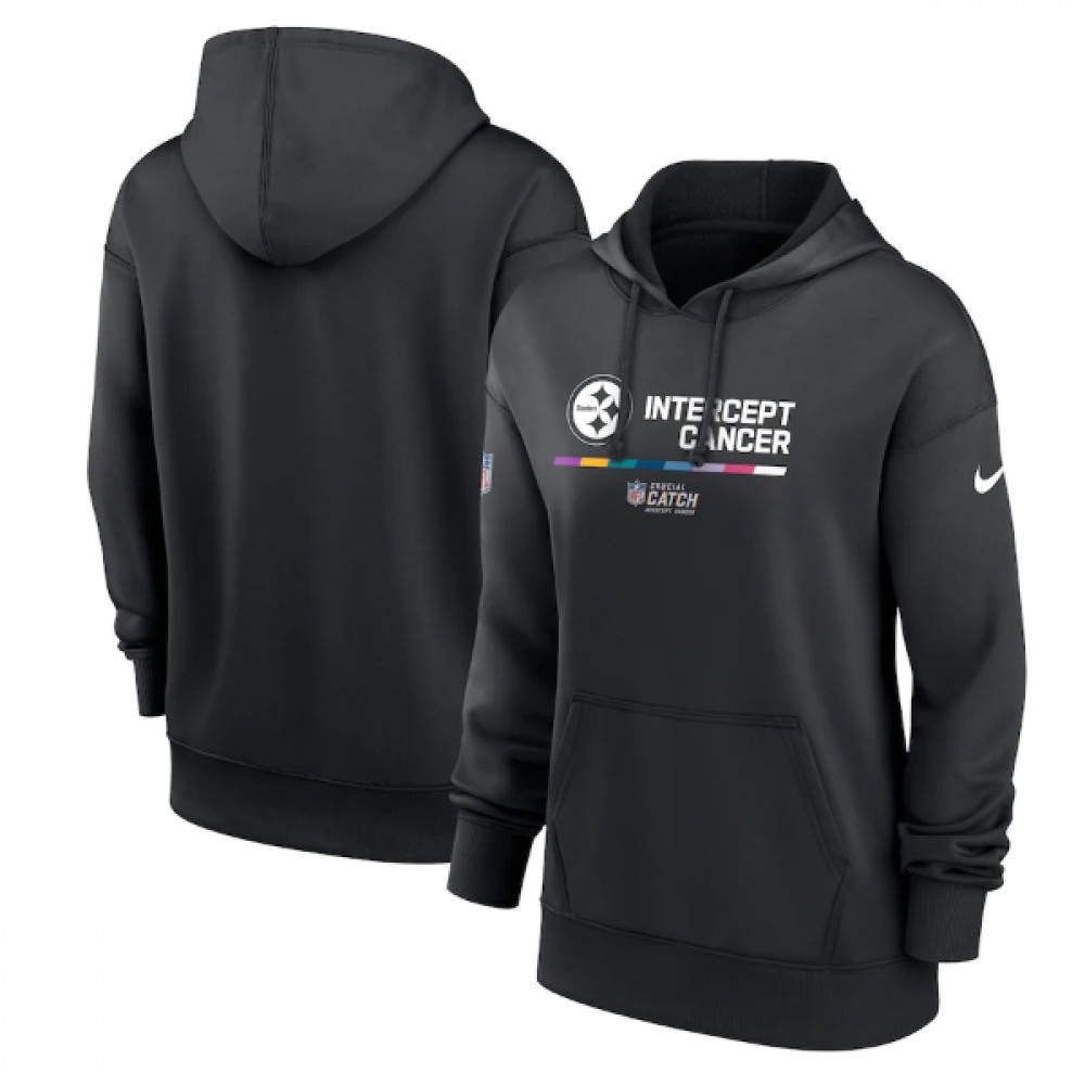 Women's Pittsburgh Steelers 2022 Black NFL Crucial Catch Therma Performance Pullover Hoodie(Run Small)