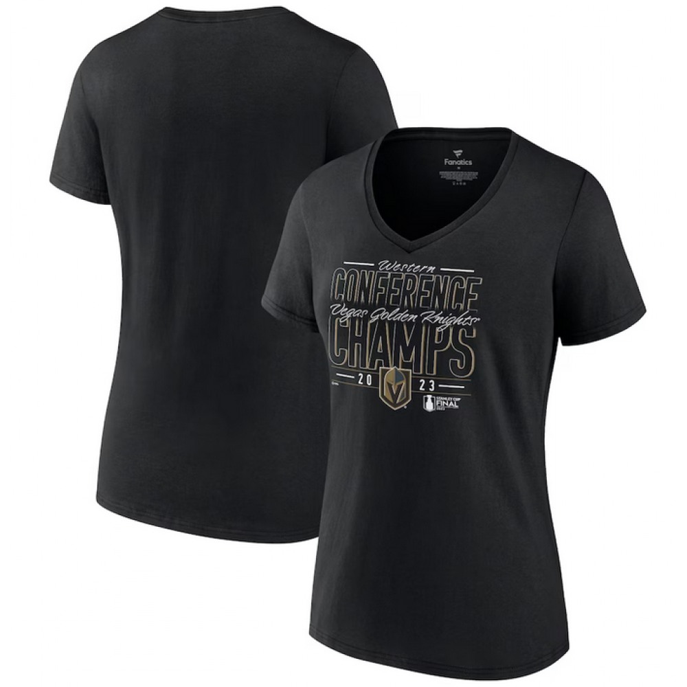 Women's Vegas Golden Knights Black 2023 Western Conference Champions Goal Tender V-Neck T-Shirt