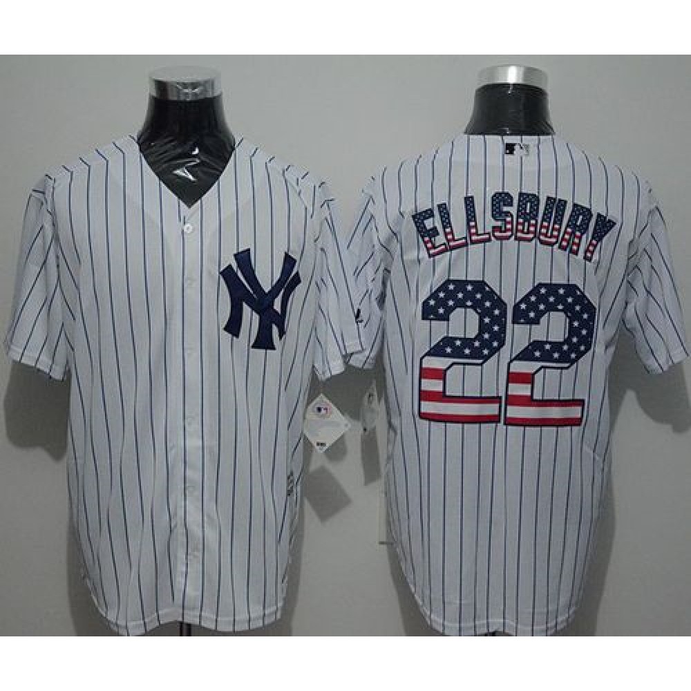 Yankees #22 Jacoby Ellsbury White Strip USA Flag Fashion Stitched MLB Jersey