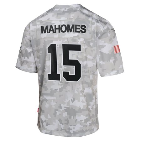 Youth Kansas City Chiefs #15 Patrick Mahomes Arctic Camo 2024 Salute to Service Game Jersey
