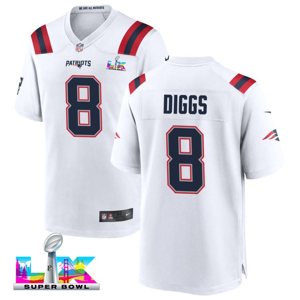 Youth New England Patriots #8 Stefon Diggs White Super Bowl LX Game Jersey