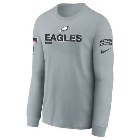Youth Philadelphia Eagles Gray 2024 Salute To Service Long Sleeve T-Shirt